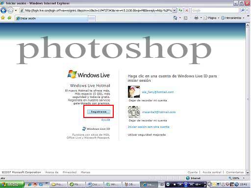 Primero se abre en tu explorador la pagina en este caso de hotmail y le das click en la opcion registrarse